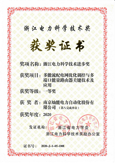 我公司作为重要参与单位,在多能流配电网优化调控与多端口能量路由器关键技术及应用技术上荣获浙江省电力学会科学技术一等奖。