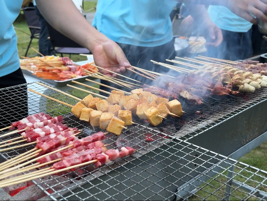 炭火点点,炊烟袅袅,浓郁的烤串香,充满了整个营地。大家围坐在一起品尝美味,感受着食物带来的温暖与满足,分享着彼此的故事与经历。