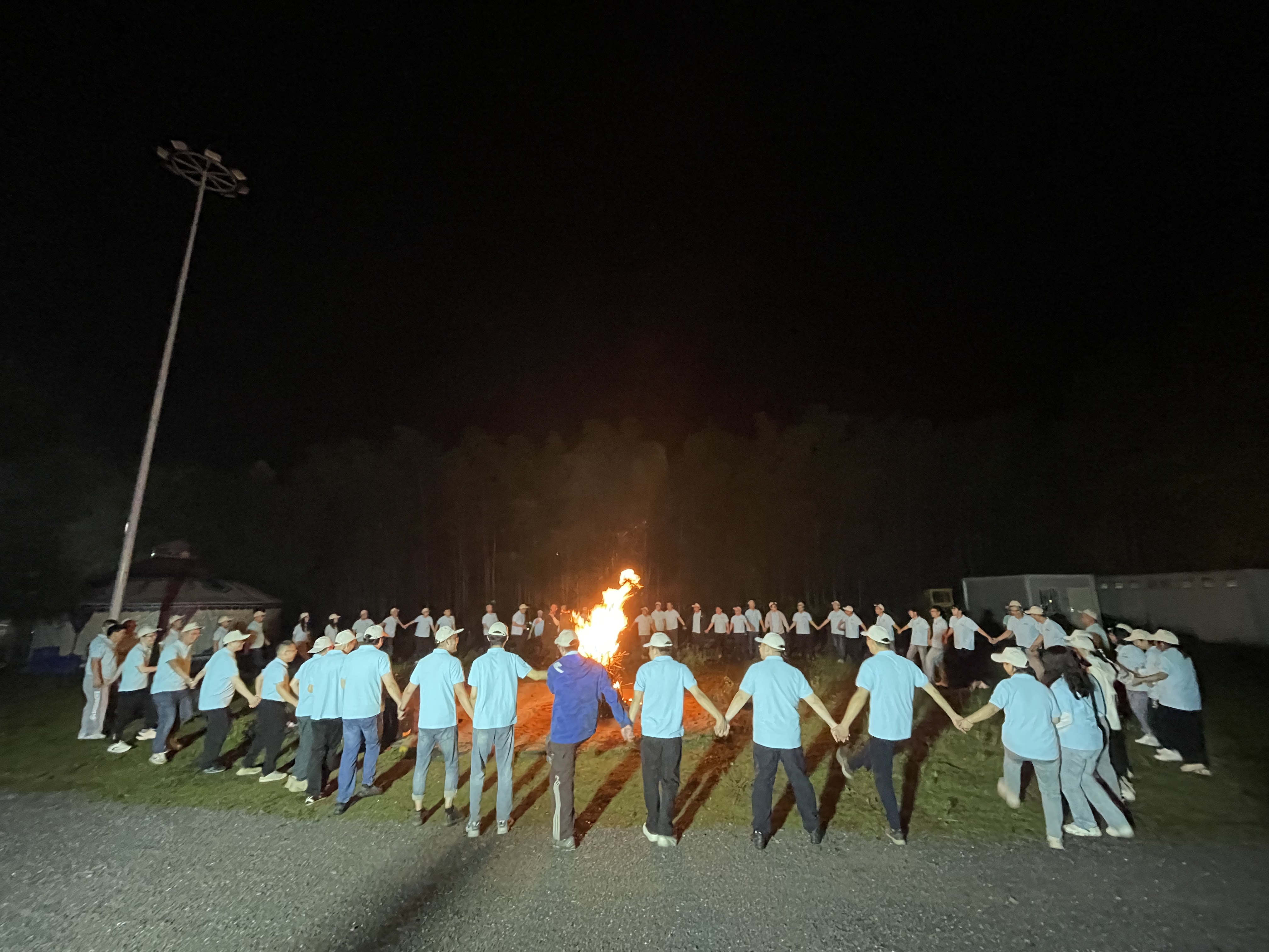 夜幕降临,啤酒配烧烤的美食盛宴后,一场篝火晚会点燃了大家的激情。熊熊篝火象征着灿能电力蒸蒸日上的发展前景与薪火相传的企业文化。围绕着火堆,大家手拉着手,唱歌跳舞,共享美好瞬间。